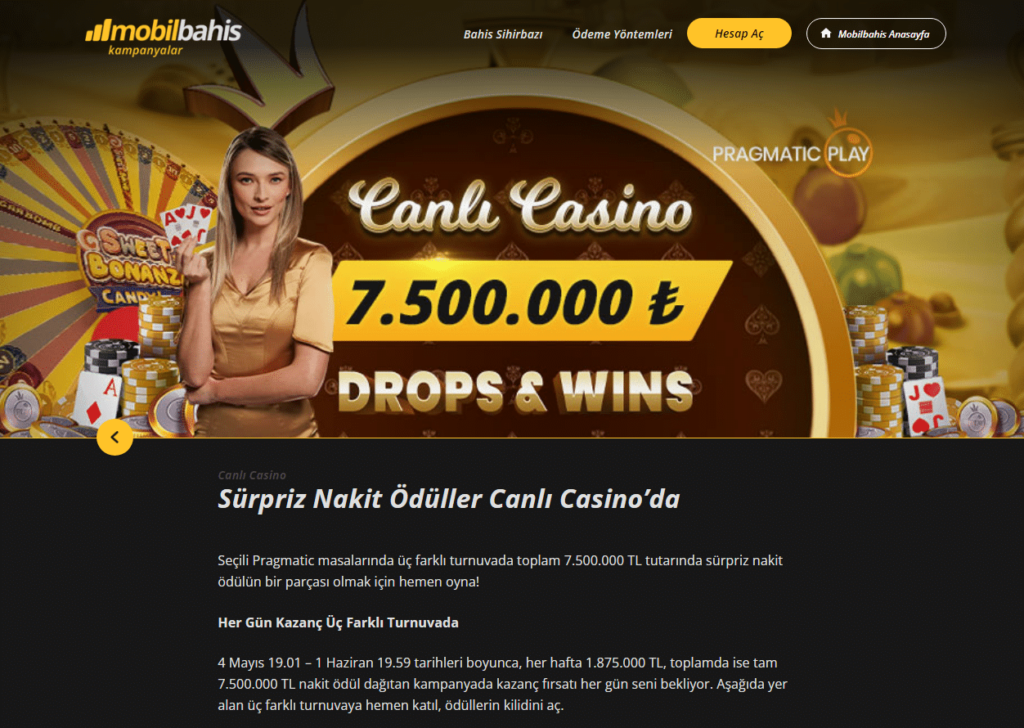 يقدّم Mobilbahis عادةً مكافأة ترحيبية للاعبين الجدد تُحتسب على أول إيداع. يتكوّن هذا العرض من رصيد إضافي بنسبة مئوية معيّنة، وأحيانًا حزمة من اللفات المجانية (Freespin) لتجربة الألعاب الشائعة. فعلى سبيل المثال، يمكن للاعب يودِع 500 ليرة تركية أن يحصل – وفقًا للشروط – على 500 TRY إضافية كبونص ليبدأ اللعب بها، وبذلك يحصل على مساحة أوسع للمناورة في المراهنات الرياضية وألعاب الكازينو.